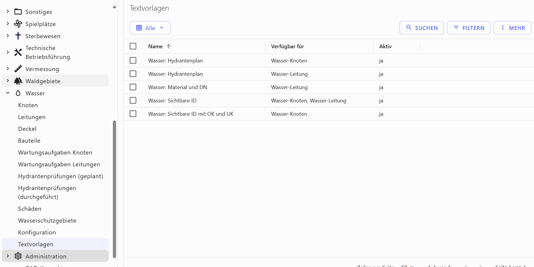Dies wurde für die Netzthemen AW, TW, Gas, Elektro, Fernwärme sowie die Schutz- und Leerrohrfachschale implementiert¹.